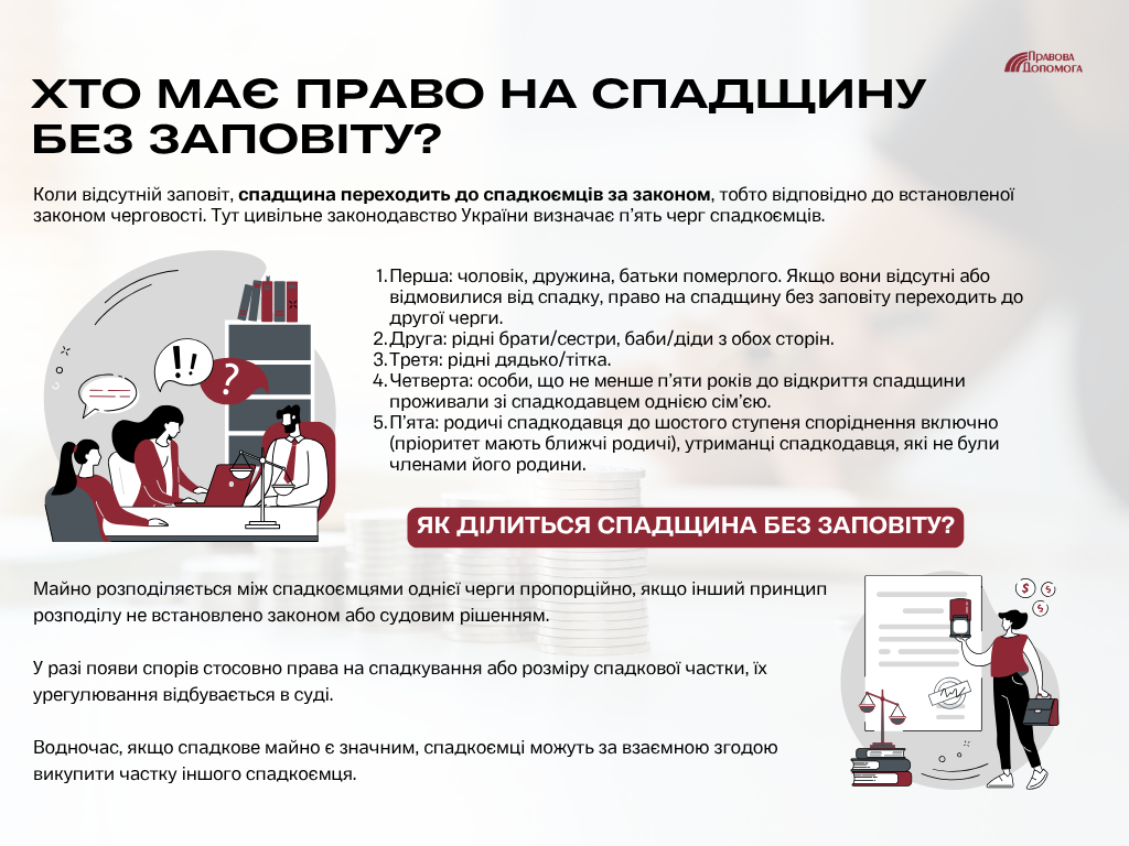 Так ось, якщо дружина: радій! Ти входиш до першої черги спадкоємців. Що це означає? Ти отримуєш автоматичне право на частину спадщини, якщо заповіт не виключив тебе зі списку спадкоємців.