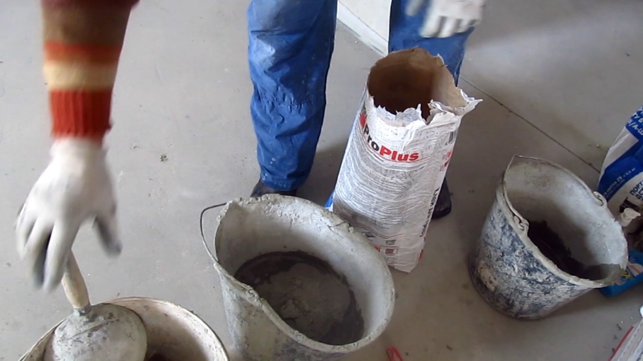 - Друге: Додаємо воду поступово, щоб не рідкий був, інакше плитка попливе як на ріці.