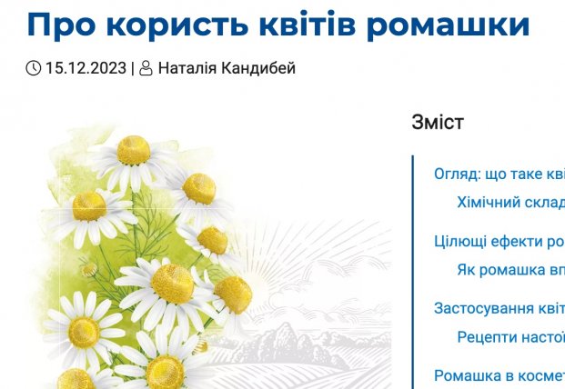 Ось дивишся на ромашку, а думаєш — просто гарна квітка. Але почекай. Чим лише не корисна ромашка! Відома з давніх-давен, ця квітка займає почесне місце на полицях наших бабусь. Одні кажуть — просто краса. Інші — панацея. Тож, давай розбиратися, що в ній такого особливого.