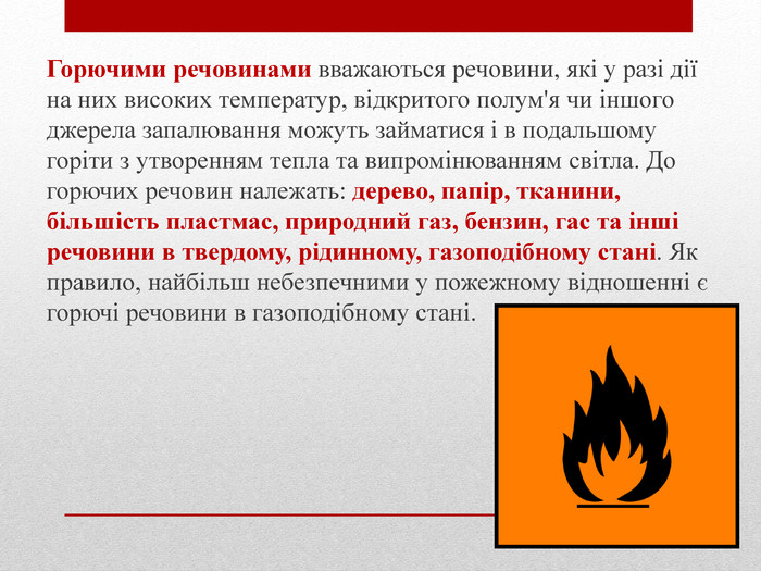 Що належить до горючих речовин?