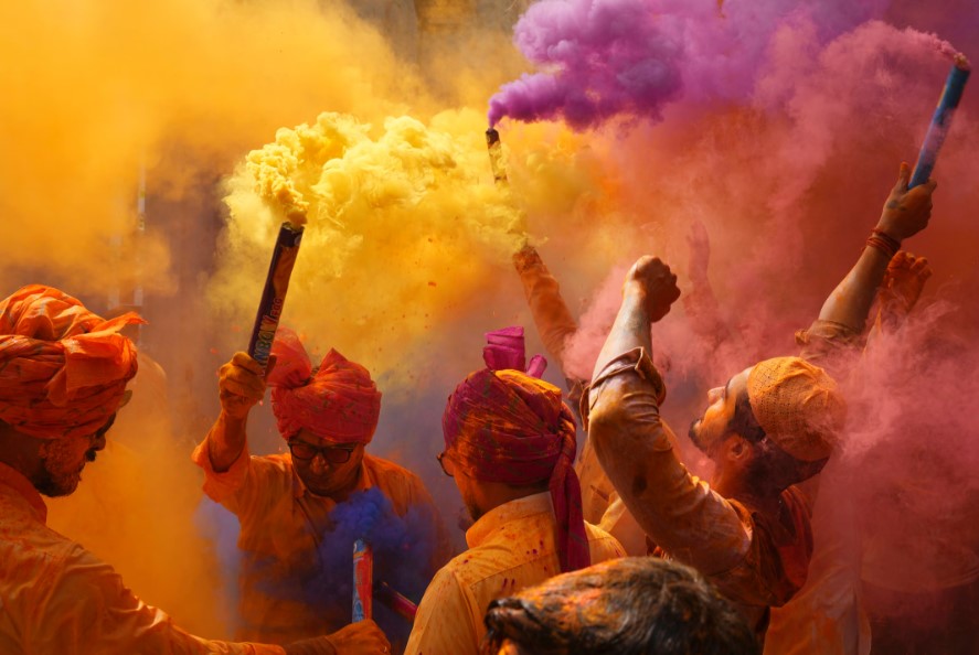 - Варіації: деякі регіони мають свої унікальні традиції, як-от Латмар Холі в Барсані, де жінки символічно “б’ють” чоловіків палицями
