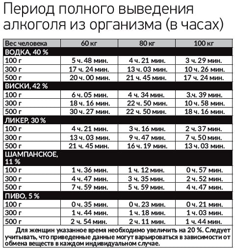 Таблиця Виведення Алкоголю
