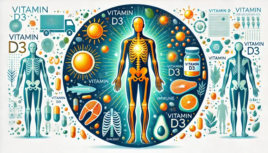 - Вітамін D3 важливий для кісток та імунітету.