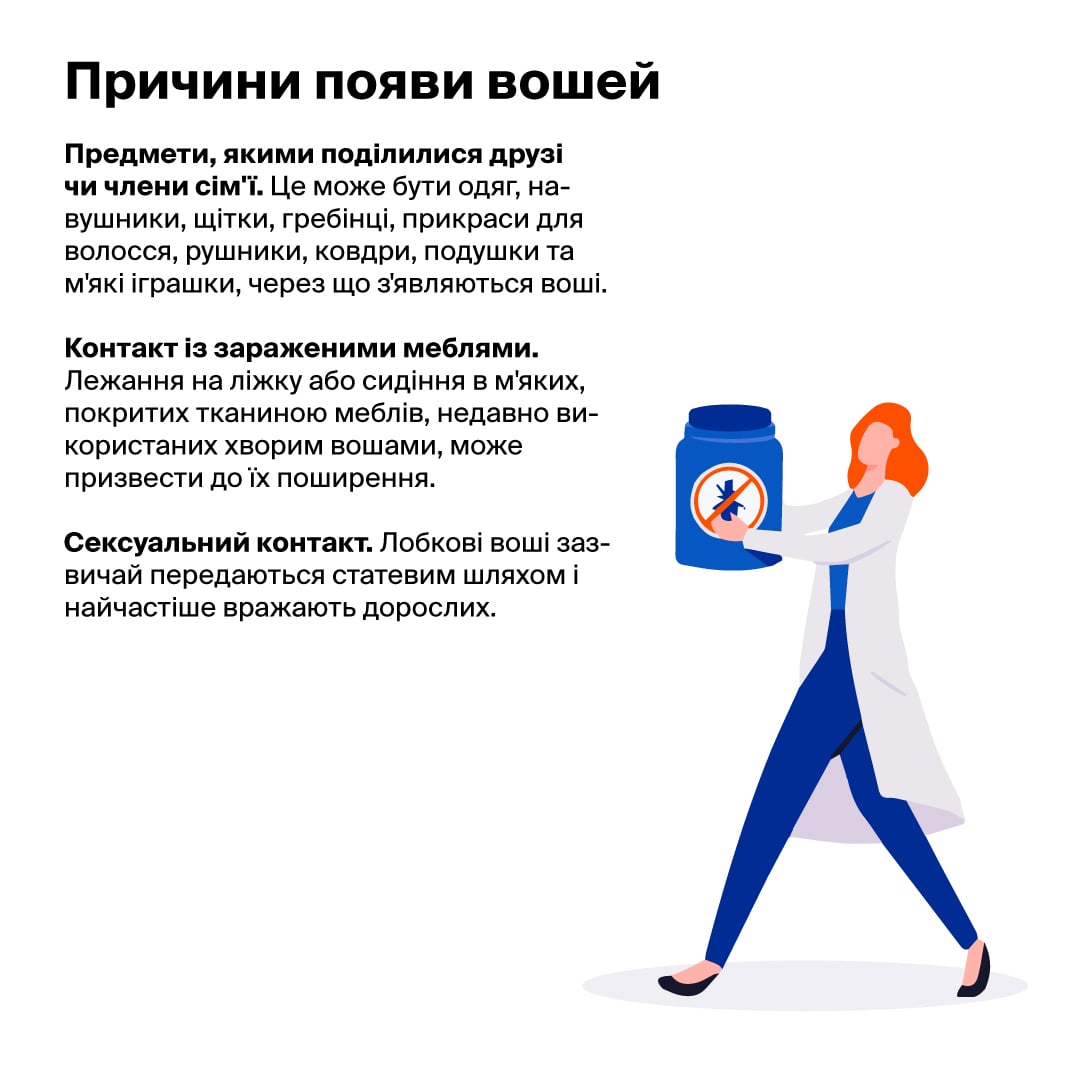 - Вторинні джерела. Воші можуть переселятися через користування загальними рушниками, постільною білизною чи одягом.
