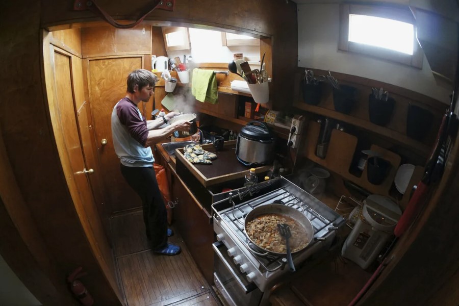Усе в камбузі, від плит до маленьких чайних ложечок, закріплено спеціальними фіксуючими елементами. Це допомагає уникнути нещасних випадків, коли судно погойдується.