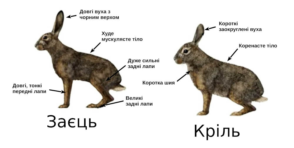 | Ознака | Заєць | Кролик |