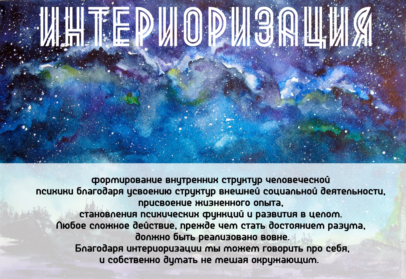 Інтеріоризація. Цікаве слово, так? Це такий процес, що відбувається у нашому мозку. Душа, розум, чи просто звички? Хто знає… Загадка інтерпретацій. Так от, це прийняття зовнішньої інформації і її внутрішня обробка. Всі чули про це, але мало хто дійсно знає, що воно таке.
