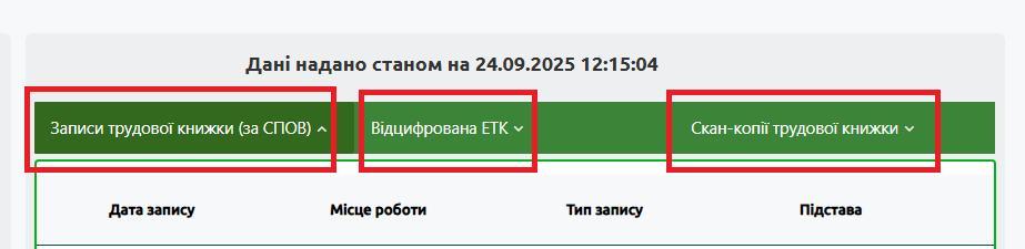 - Перевірте статус оцифровки в розділі Трудова книжка.