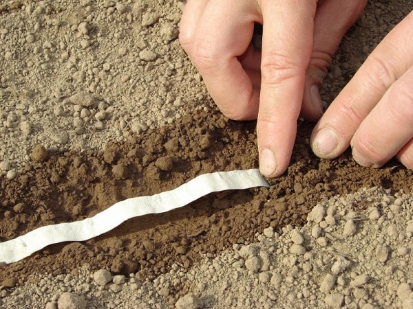 5. Засипка землею. Легенько засипте стрічку ґрунтом, щоб вона була добре закрита. Можна трохи ущільнити землю зверху.