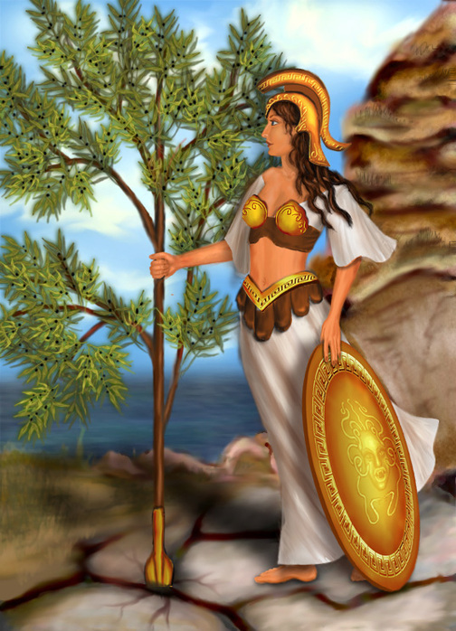 - Афіна ж дала людям оливу — деревце, що приносило плоди, звідки можна було добути олію.